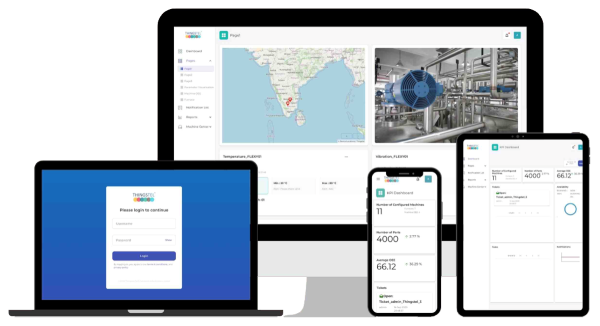 Our platform enables Digital twin of a physical setup and supports visualisation of data from IoT devices.